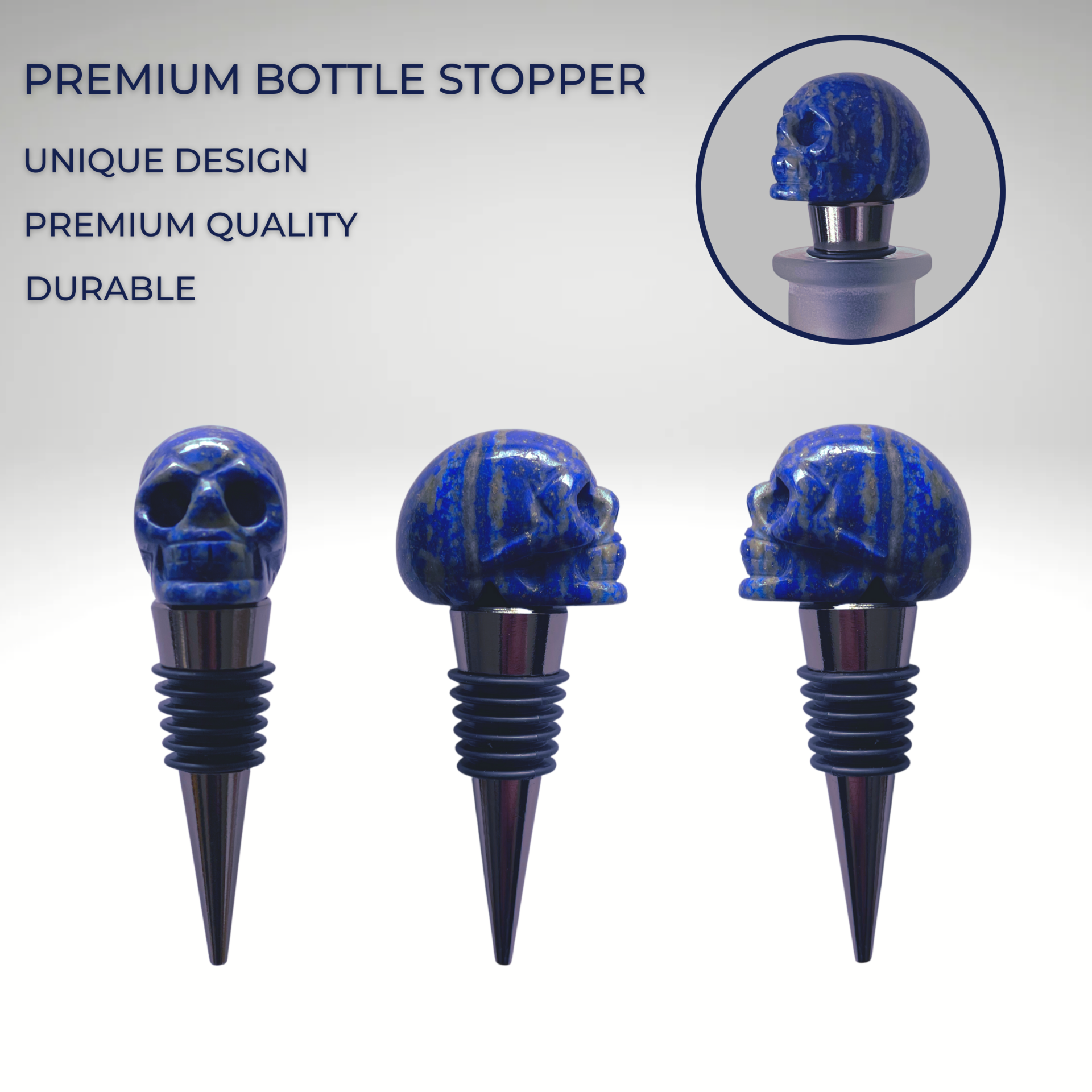 - 1 premium black bottle stopper with skull design in 100% natural lapis lazuli stone