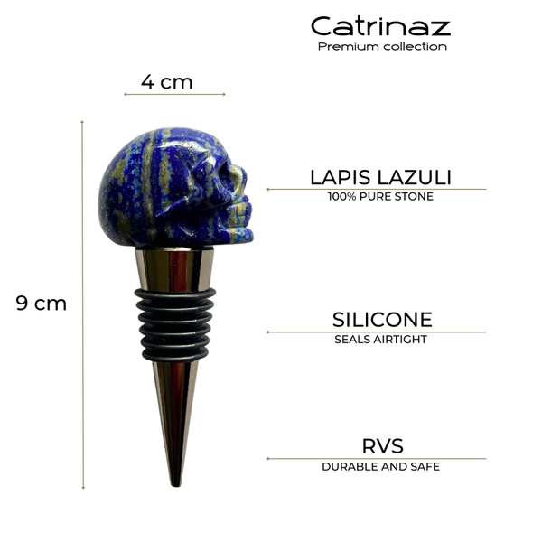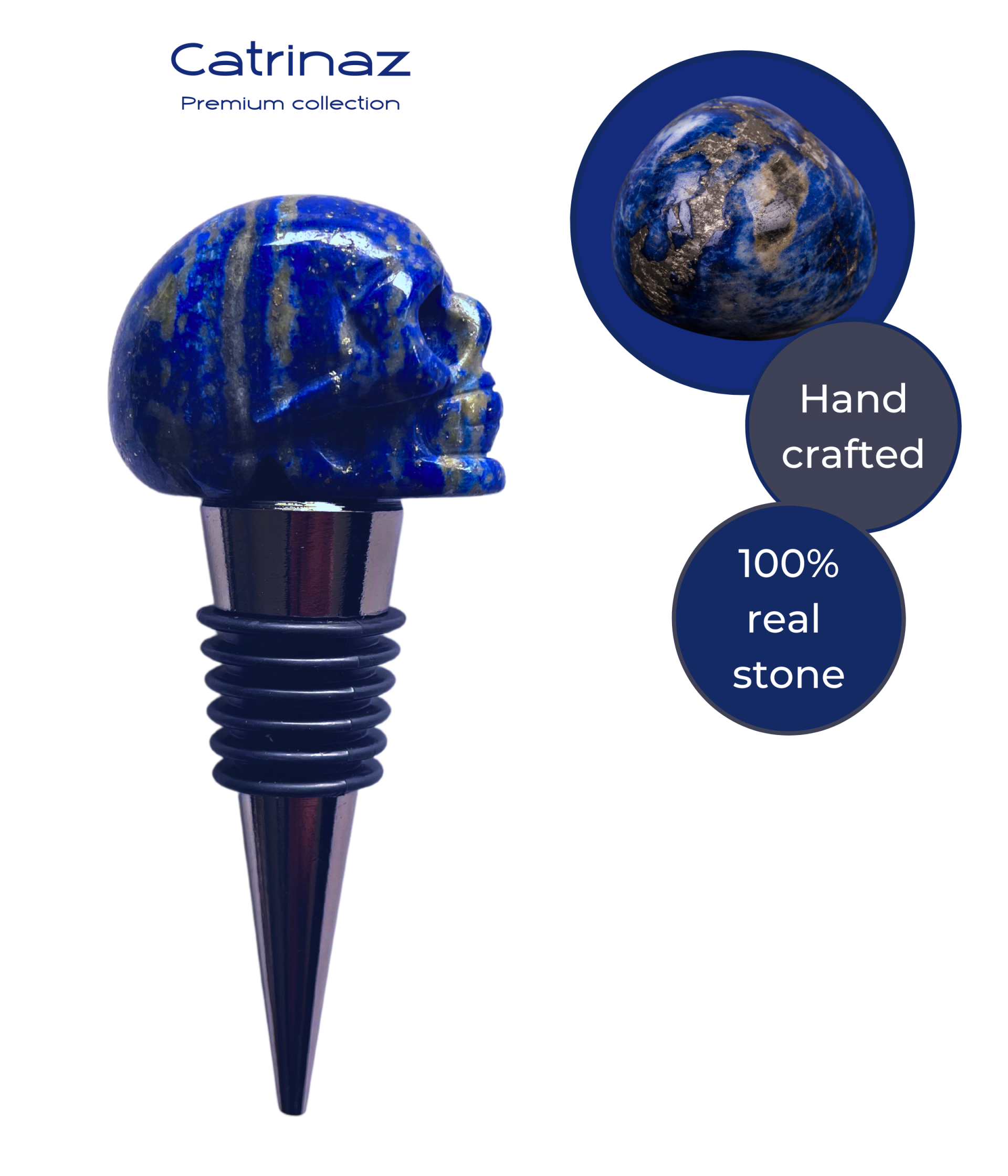 Catrinaz® - Premium bottle stopper with skull - Lapis lazuli 100% natural stone - Wine stopper - gift box - Unique gift