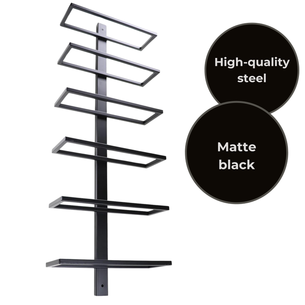 Are you looking for a stylish way to display your favorite wines? This premium black steel wine rack from Catrinaz is exactly what you need! With space for 6 bottles, you can elegantly mount your wine stock on the wall. Give your interior a touch of class and make sure you always have a good bottle within reach. Choose the best, choose Catrinaz!