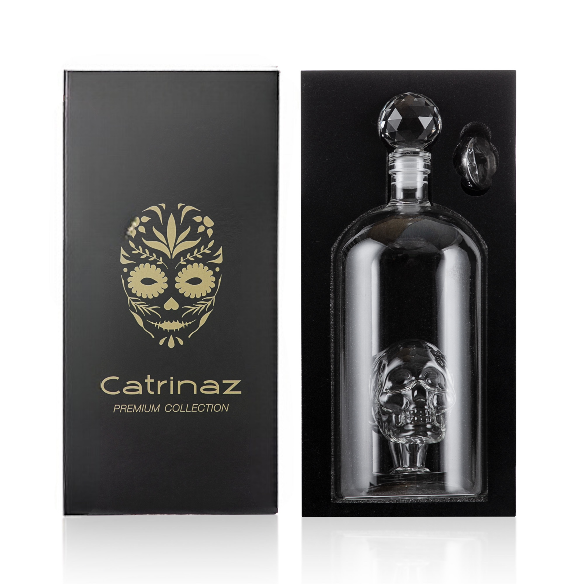 Catrinaz® - Premium spirit carafe with skull design - Decanter - Whiskey carafe -1L - Luxury gift box