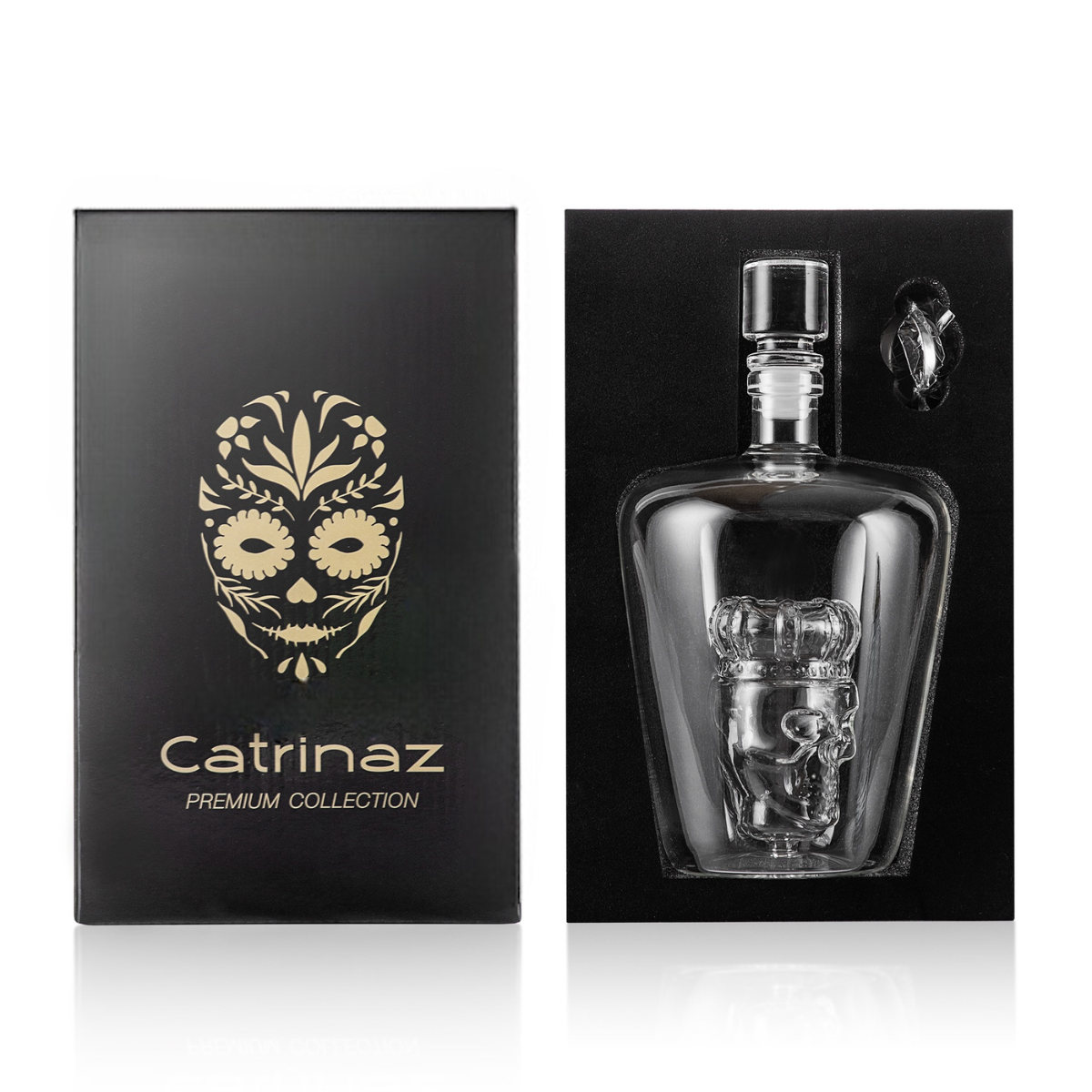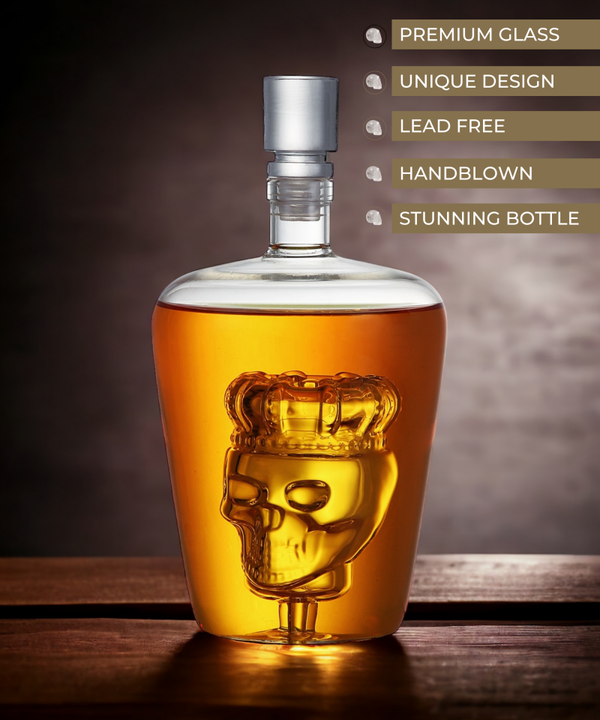 Catrinaz® - Premium skull decanter with crown - Carafe - Spirit Decanter - Whiskey/Tequila decanter- 1L - Luxury gift box